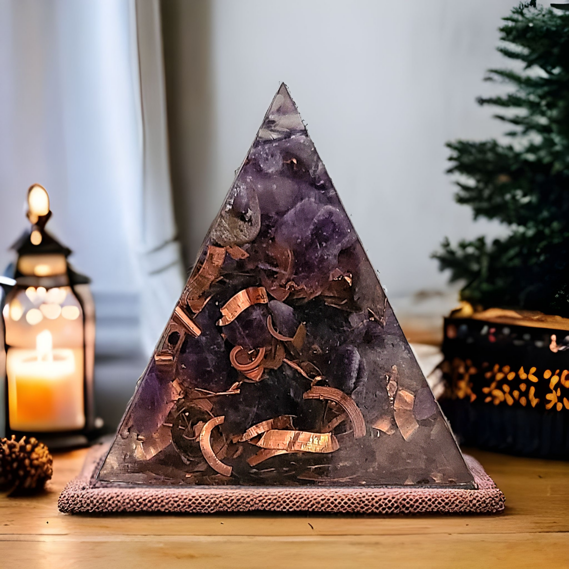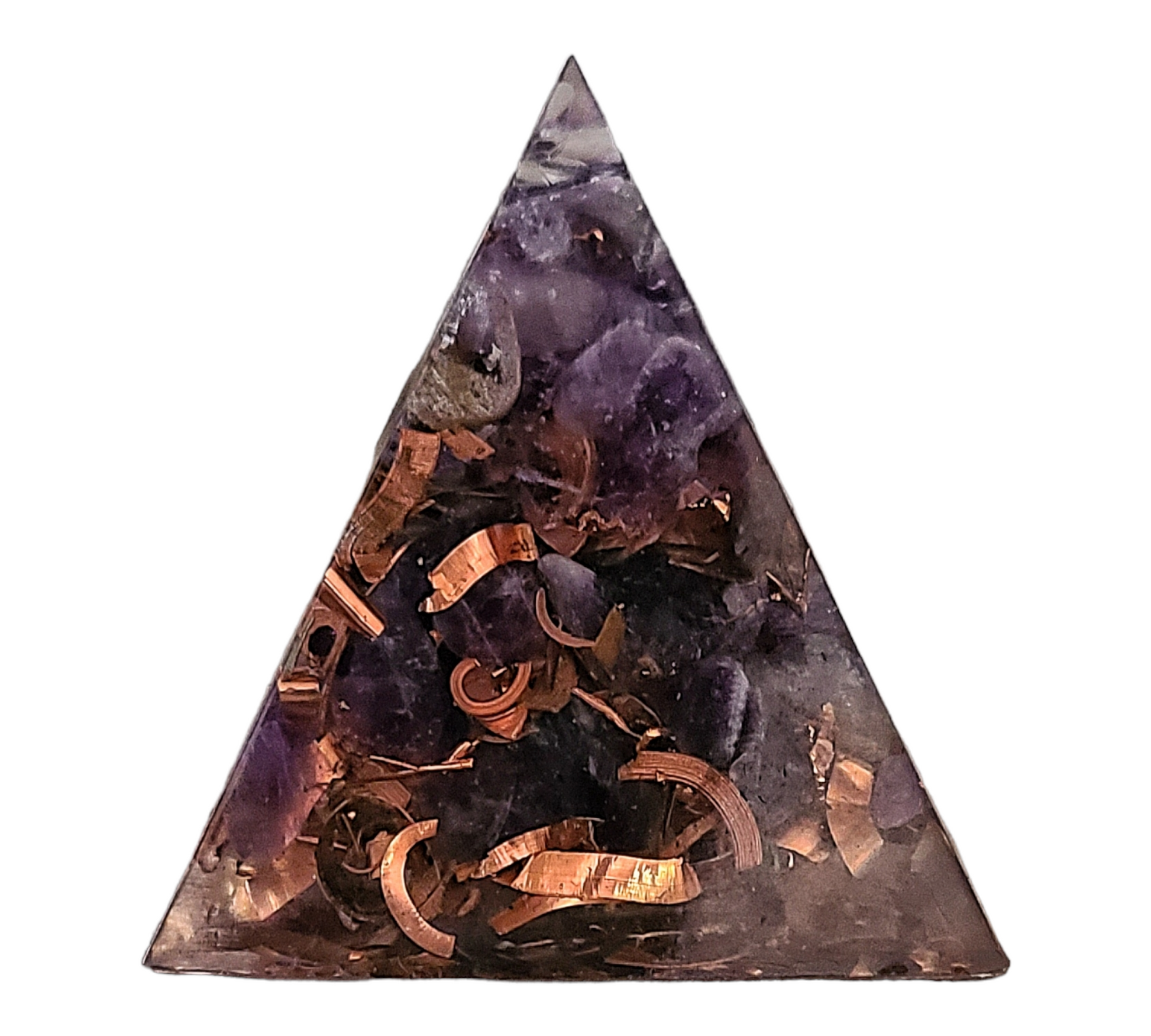 The Amethyst Orgone Energy Pyramid is a great self care tool and protection crystal mix as well as assisting to enhance psychic abilities, provide peaceful rest, assist with the dream state and creativity. This piece is a decorative assistant to your energy healing and energy clearing ritual. Orgone energy devices fill your space with positive energy while adding a stylish pop to any space. This beautiful piece makes for a great anytime spiritual gift and self care gift for loved ones.