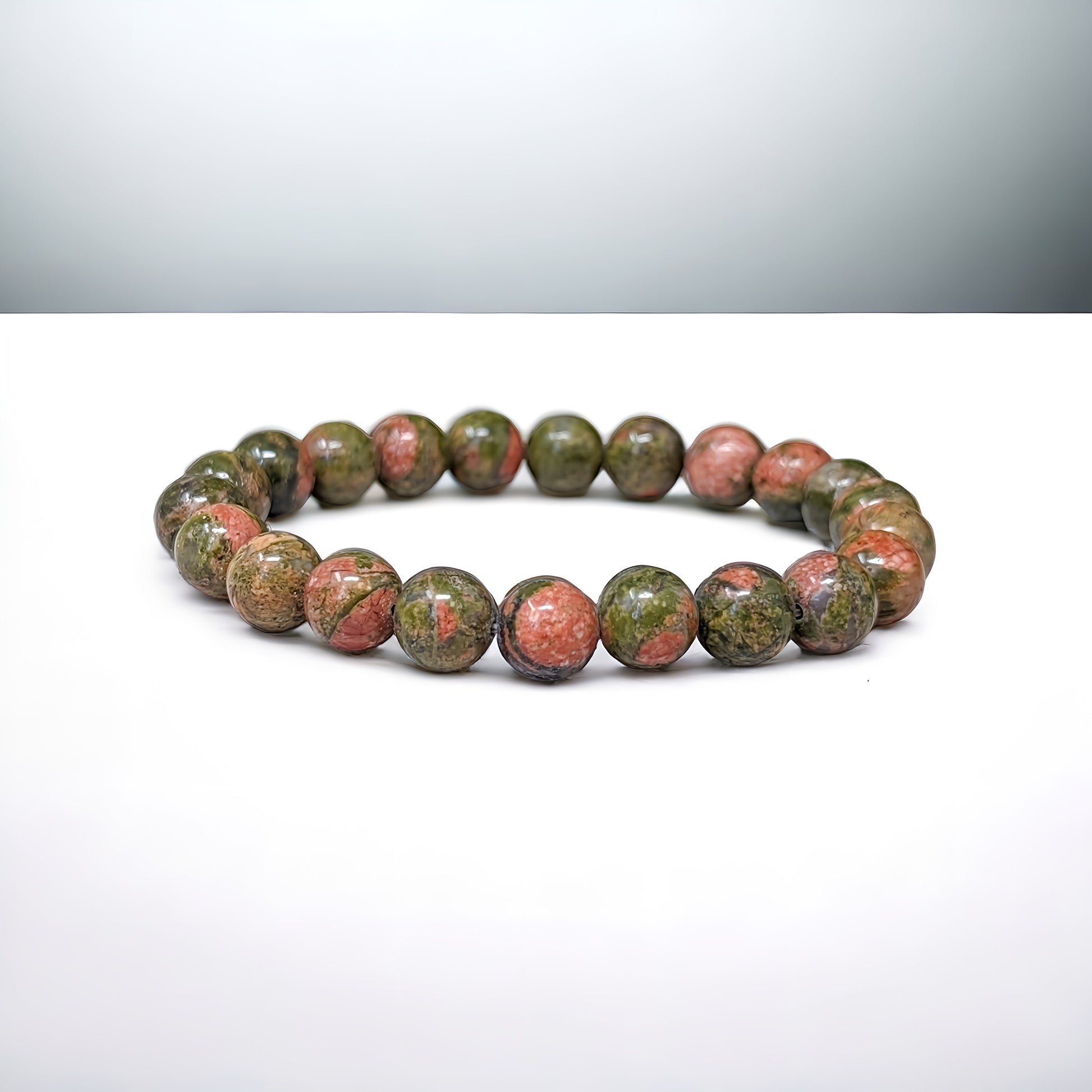 Additionally, this stone is believed to aid in manifestation, particularly of wellness and abundance. Wearing a Unakite Bead Bracelet can help you focus on nurturing your personal growth and fostering the positive energies needed to achieve your desires.