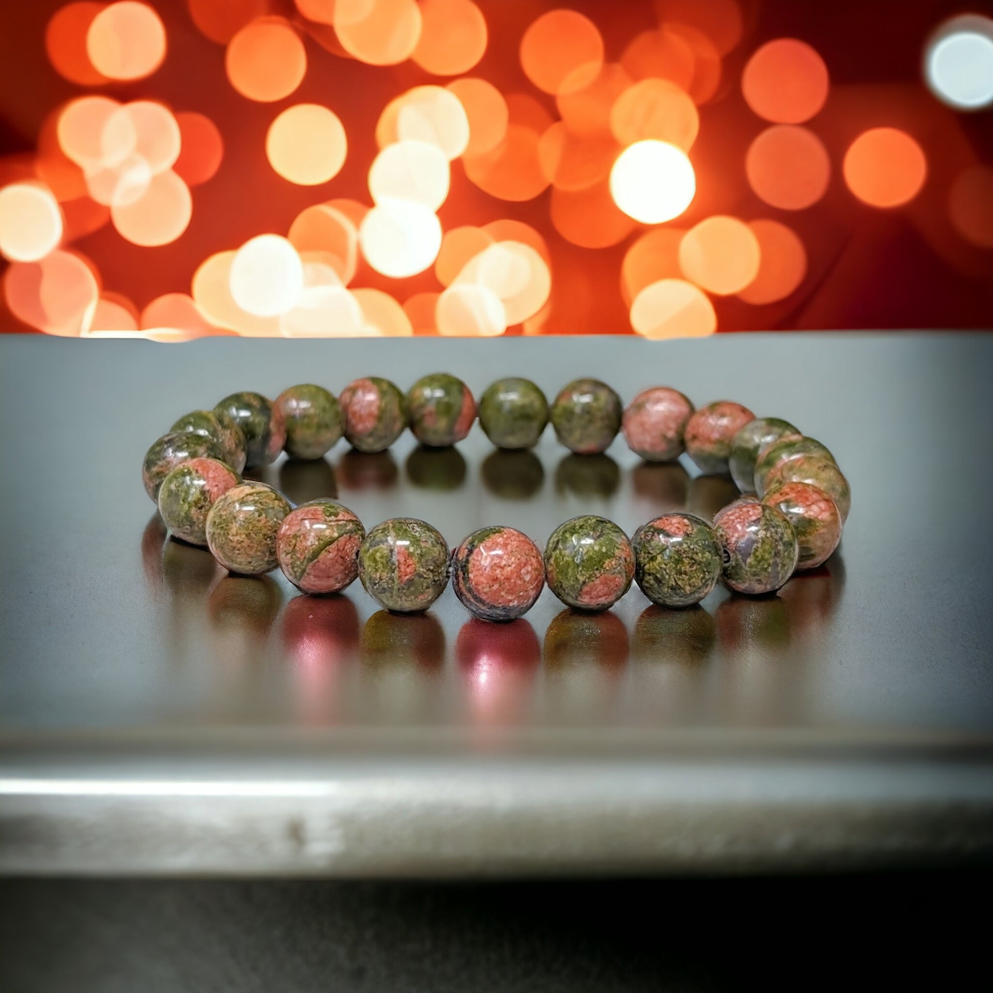 Perfect for anyone looking to enhance their emotional well-being and promote a balanced lifestyle, the Unakite Bead Bracelet offers a touch of natural beauty while serving as a constant reminder of inner harmony and peace.